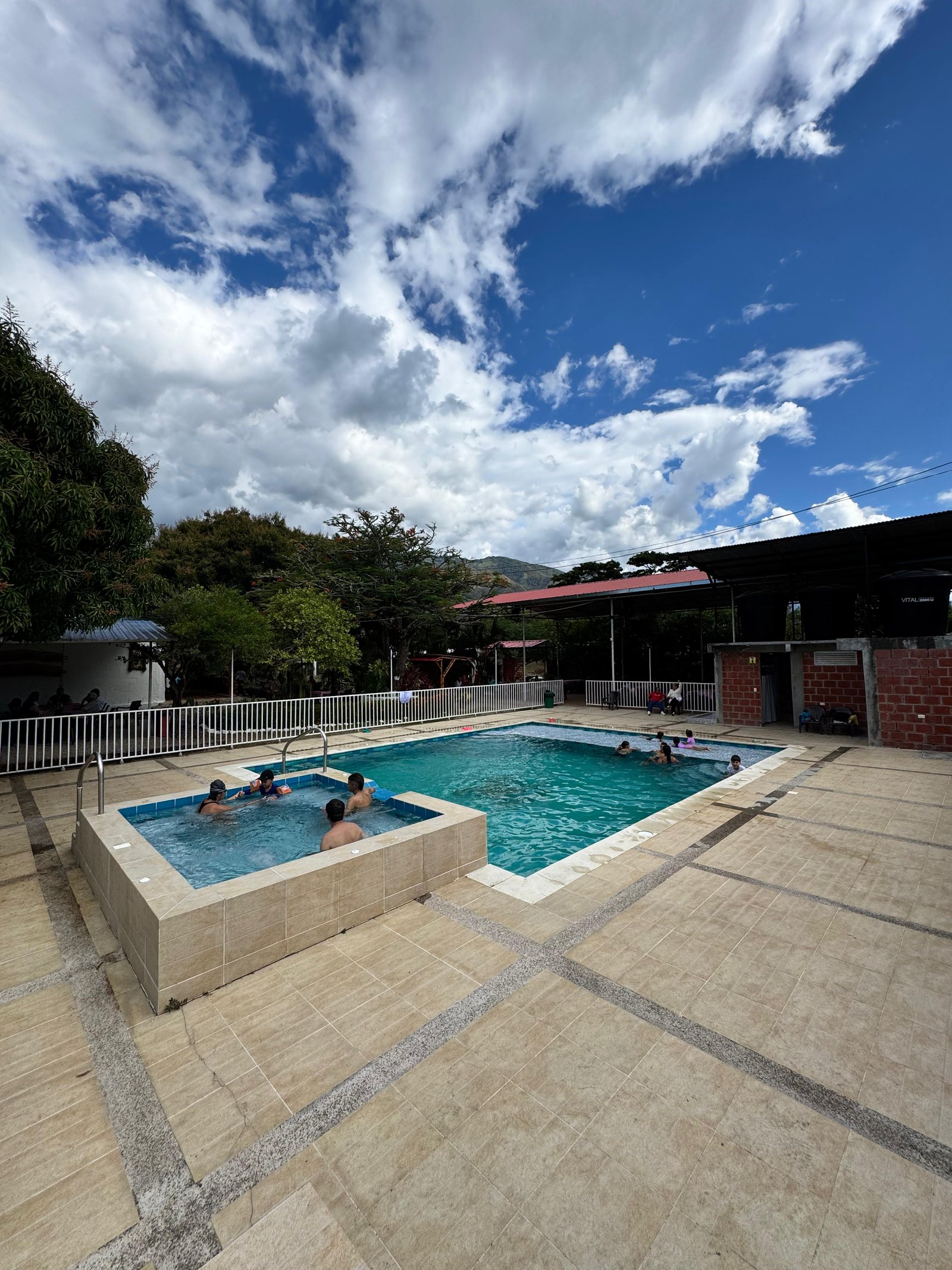Disfruta de un refrescante día en nuestra piscina, rodeada de áreas verdes y comodidad, ideal para relajarte y compartir en familia o con amigos.